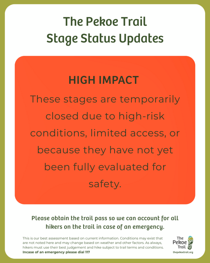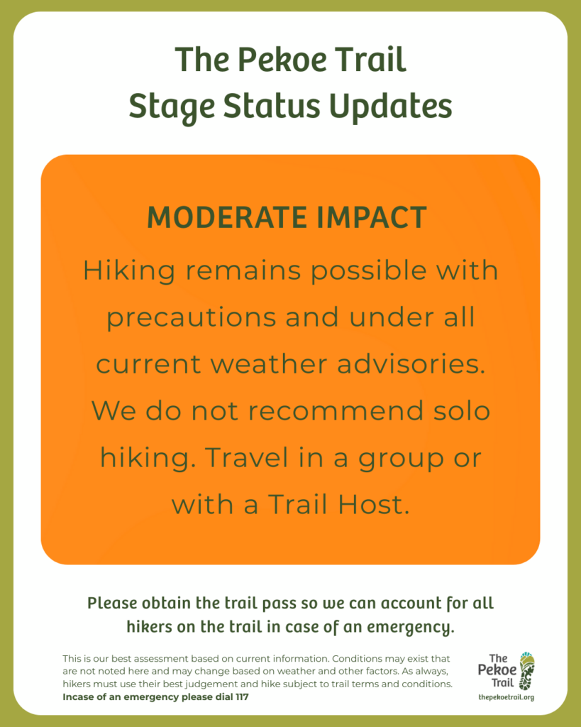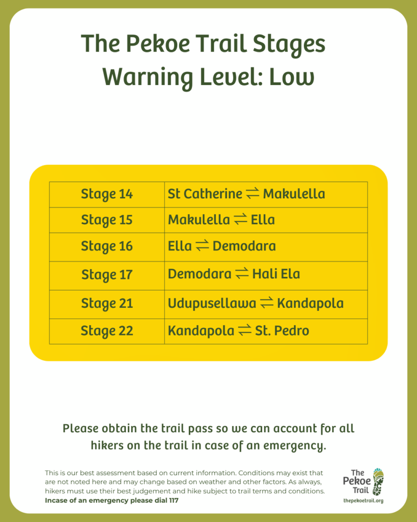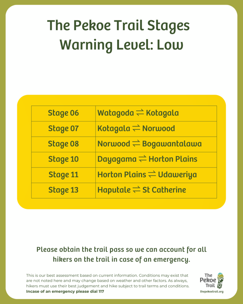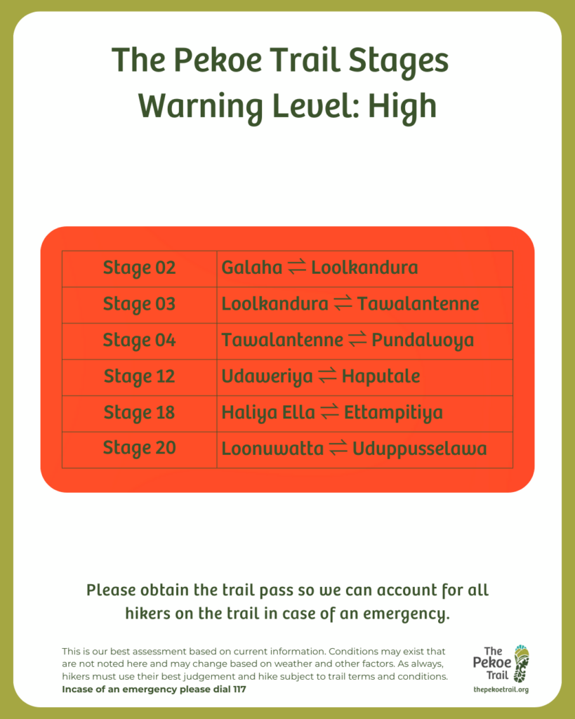 Sri Lanka’s central highlands continue to stabilise following the recent extreme weather. Our on-ground field teams have now fully mapped the hikeable sections of The Pekoe Trail. This verified assessment enables hikers to plan responsibly, understand terrain conditions, and walk with informed awareness.